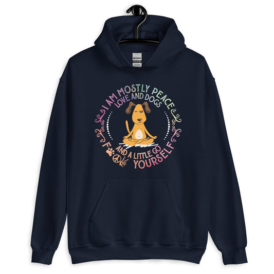 I Am Mostly Peace Love and Dogs Yoga Hoodie