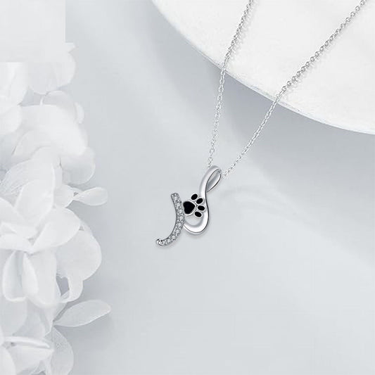 Cute Paw Print Necklace in 925 Sterling Silver with Cubic Zirconia
