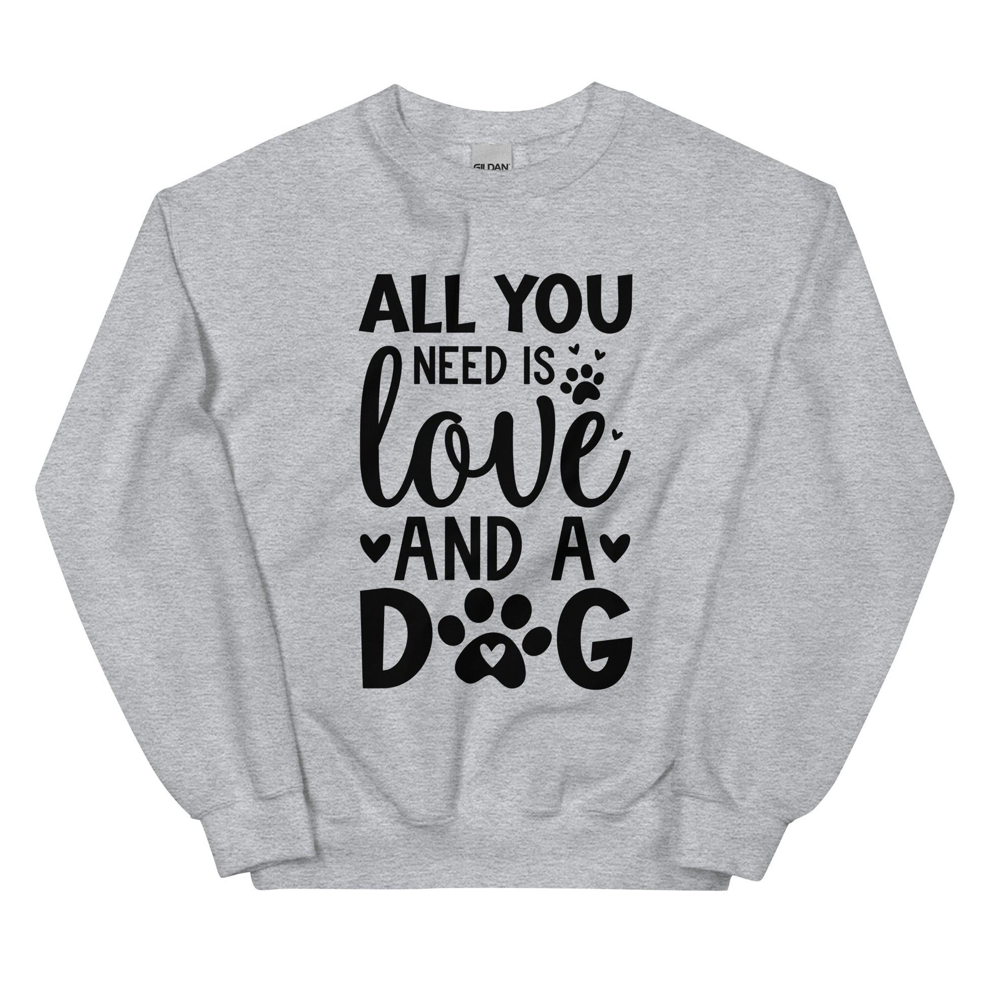 All You Need is Love and A Dog Sweatshirt is printed in USA