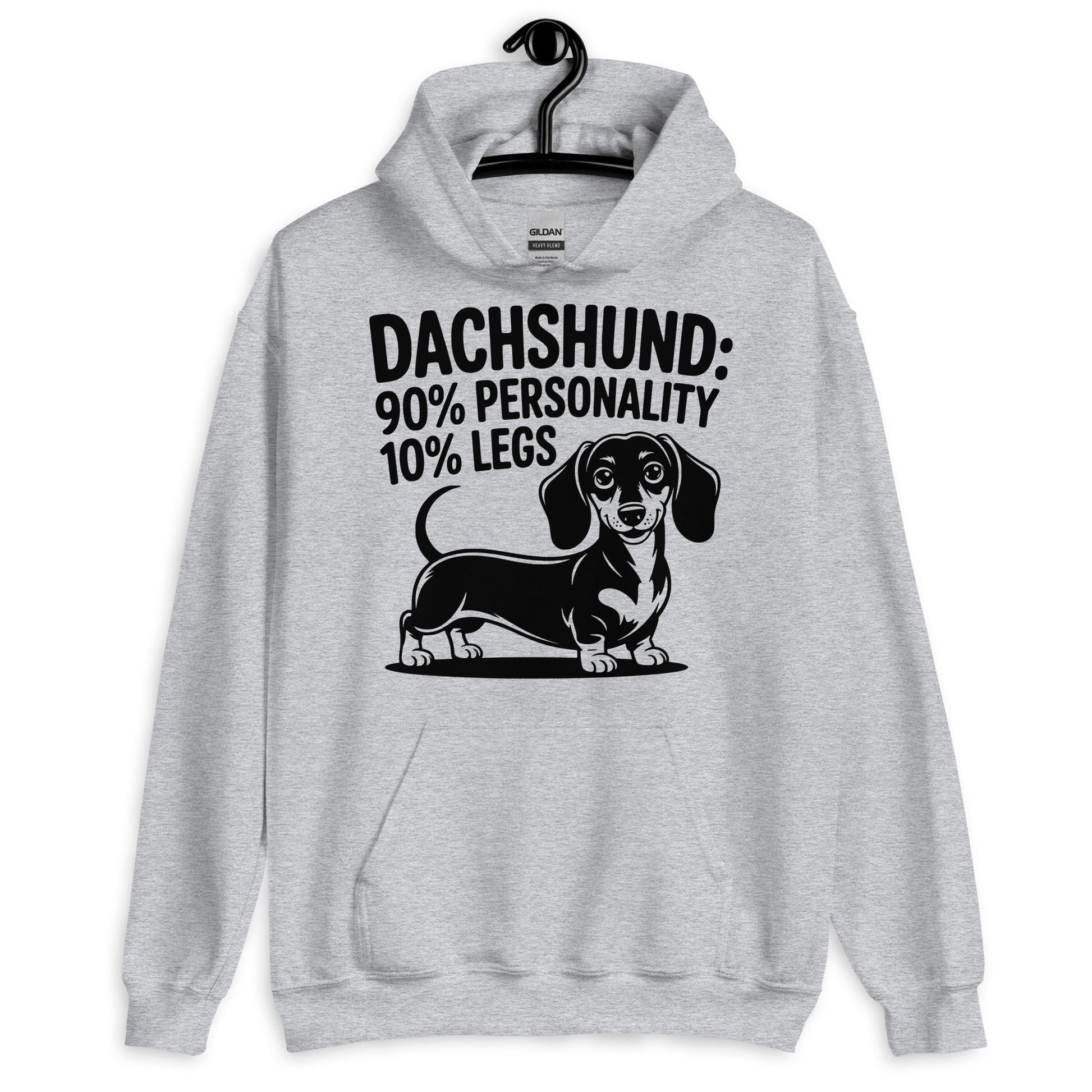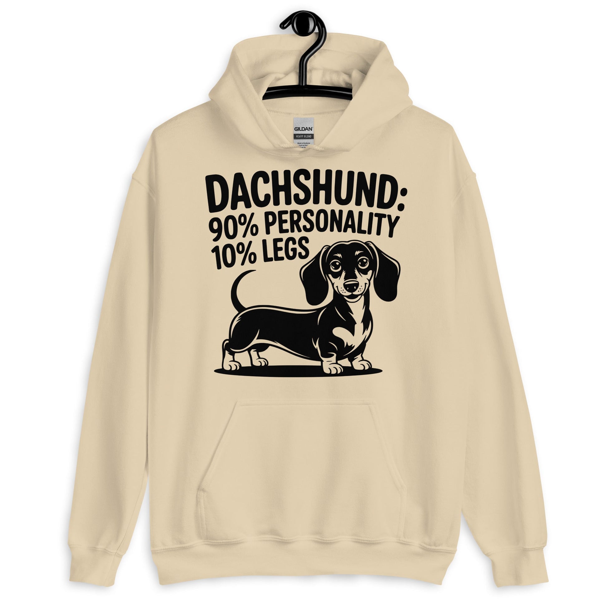 When your legs are short but your attitude is taller than the couch you can’t jump on. 🐾 This cozy Dachshund: 90% Personality, 10% Legs Hoodie celebrates the fearless, funny, and totally loveable spirit of every doxie.