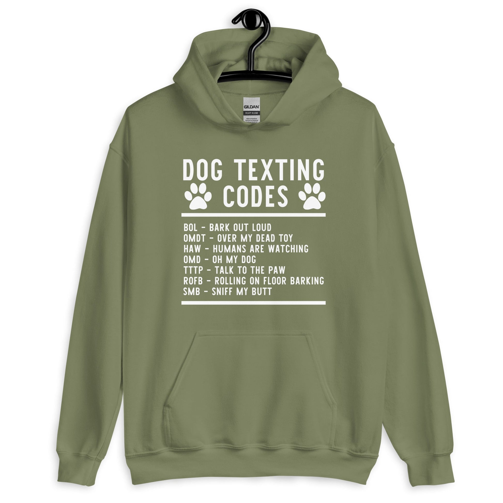 Dog Texting Codes Unisex Hoodies are printed in USA