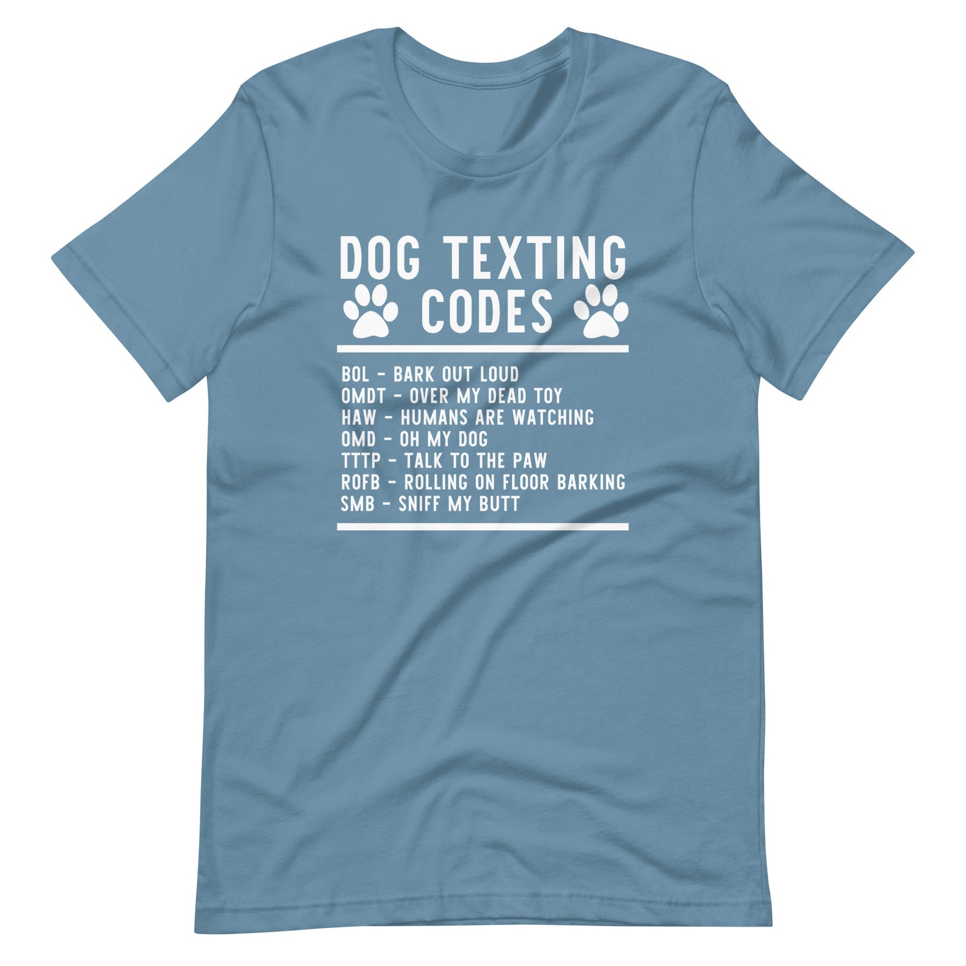 Dog Texting Codes Unisex t-shirts are printed in USA