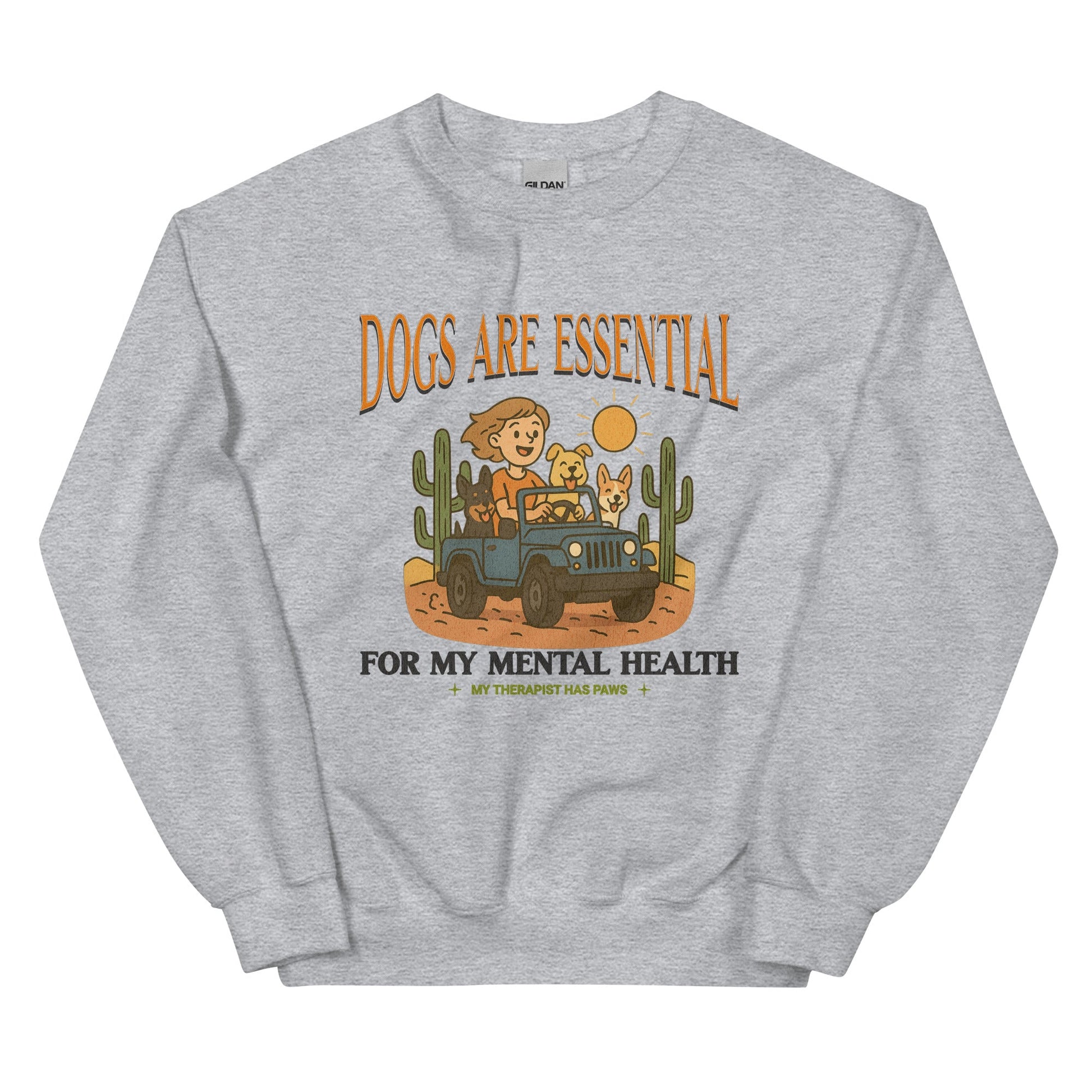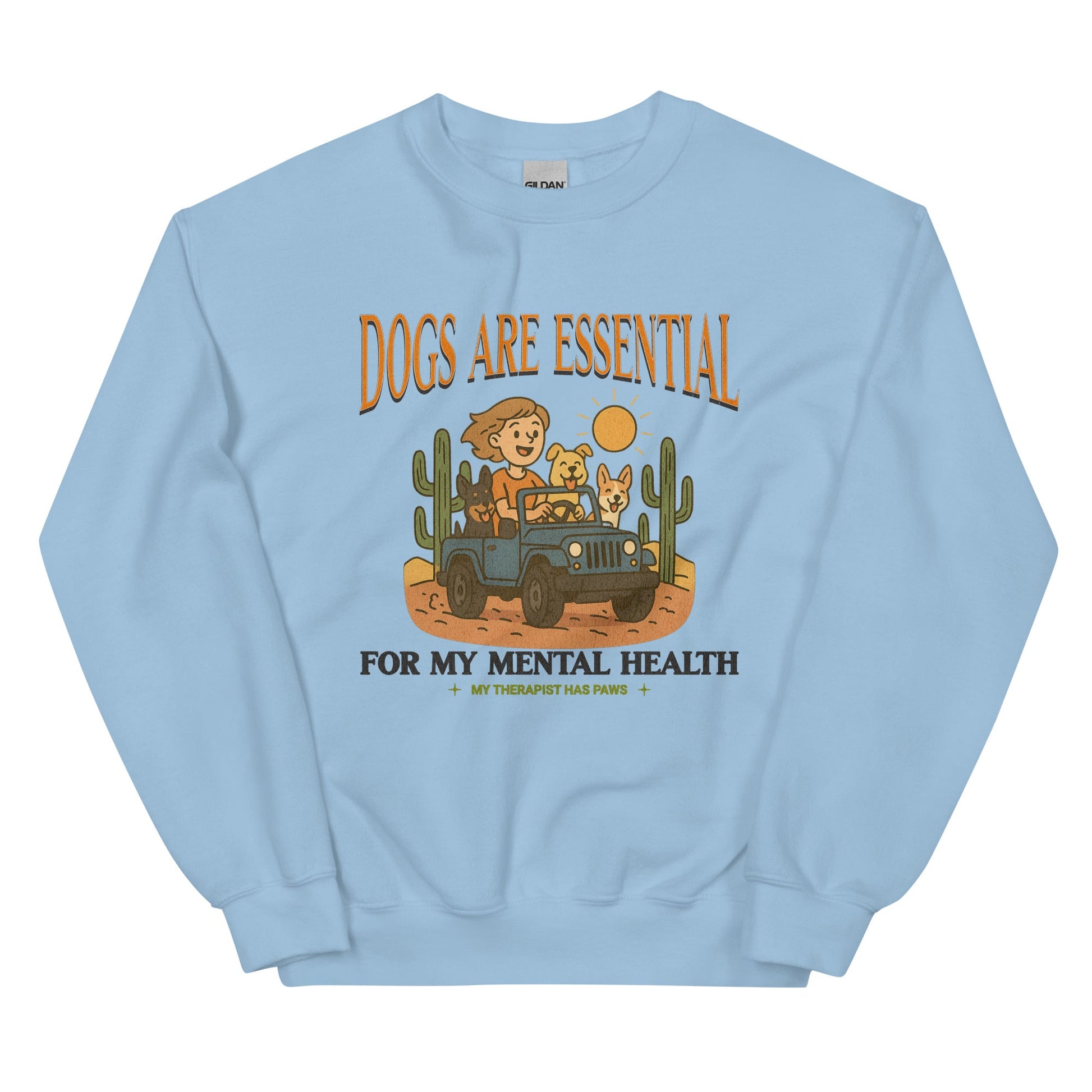 Wrap yourself in comfort and canine love with our "Dogs Are Essential For My Mental Health" Sweatshirt. Designed for dog moms, dog dads, and anyone who knows that a wagging tail can lift your spirits, this cozy pullover is more than just a sweatshirt it’s a mental health statement.