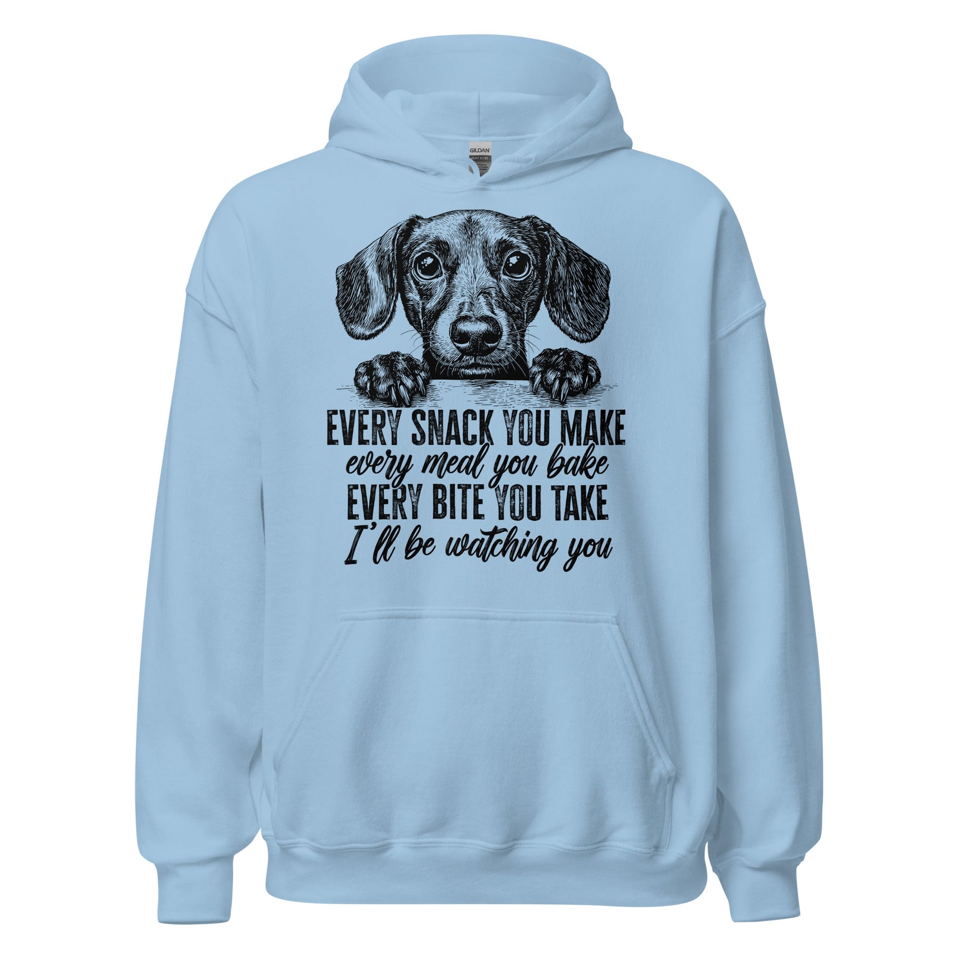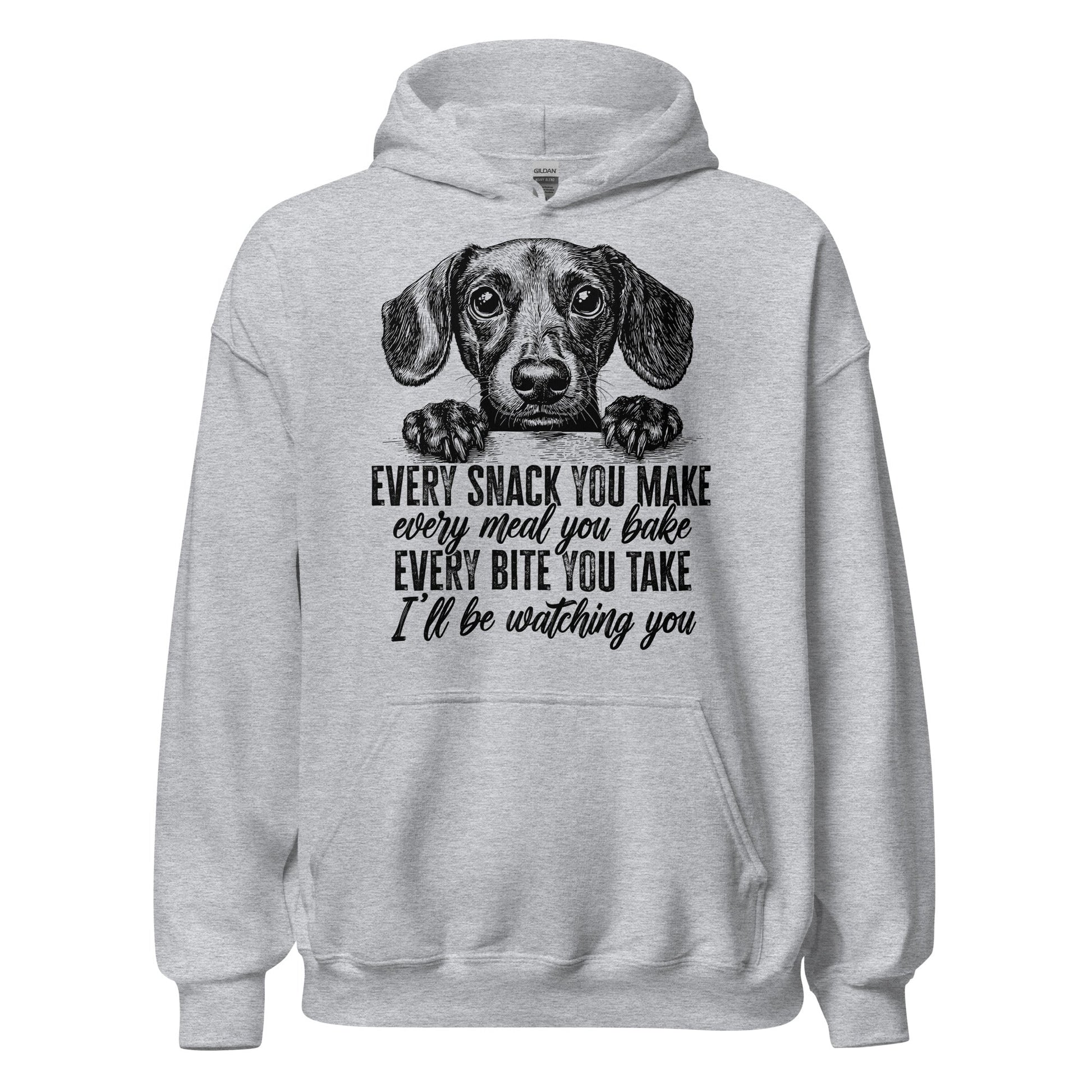 Dog moms, you know the look—that soulful stare from your pup every time food's involved. Our "Every snack you make, every meal you bake, every bite you take, I'll be watching you" hoodie is a hilarious (and painfully accurate) tribute to our forever-hungry fur babies. It is perfect for lounging, snacking, or sneaking treats under the table.