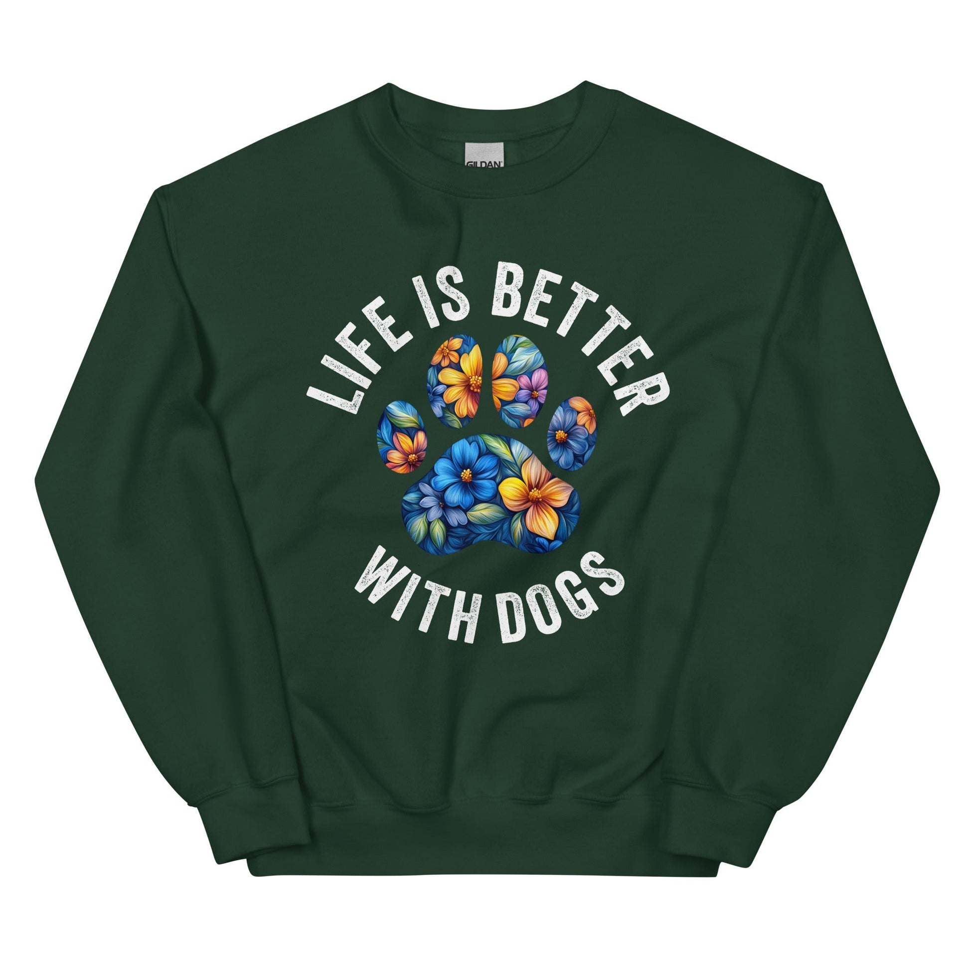 Floral Paw Life is Better with Dogs Sweatshirt is printed in USA