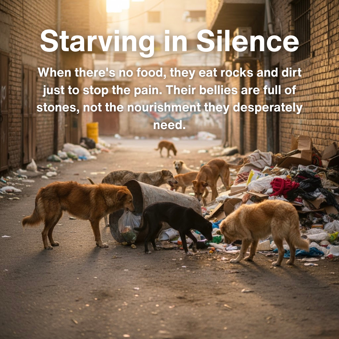 Dogs with empty stomachs and broken trust. Their eyes reveal stories we can't ignore. Hunger. Pain. Being forgotten.