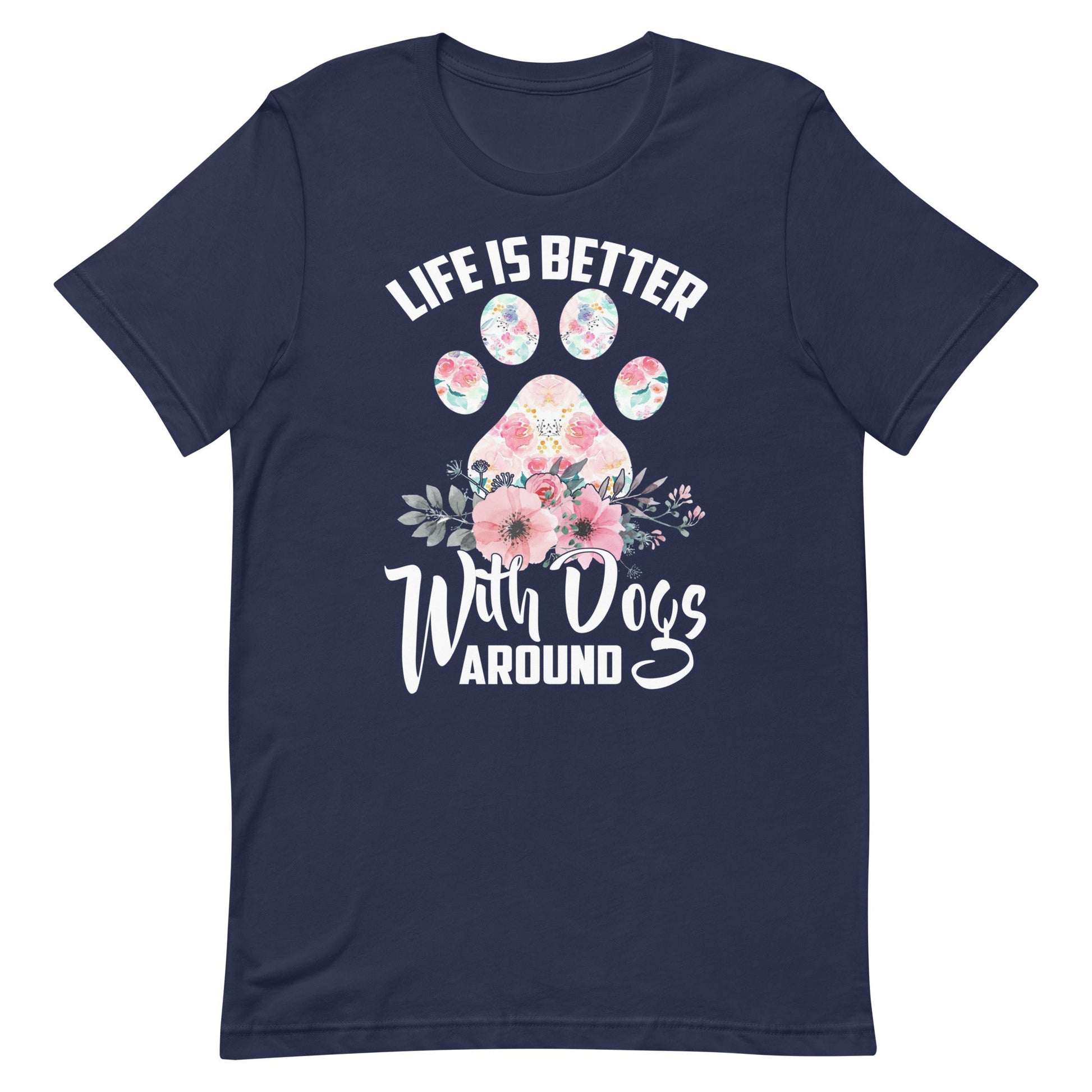 Life is Better with Dogs Around T-Shirts are printed in USA