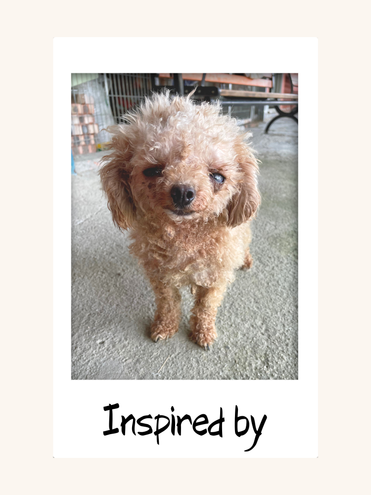 🐶 Inspiration — Afu was rescued after being lost in a busy town, weaving through legs and cars, as if delivering little messages to everyone he passed. He’s now the shelter’s official greeter, always eager to say hello.