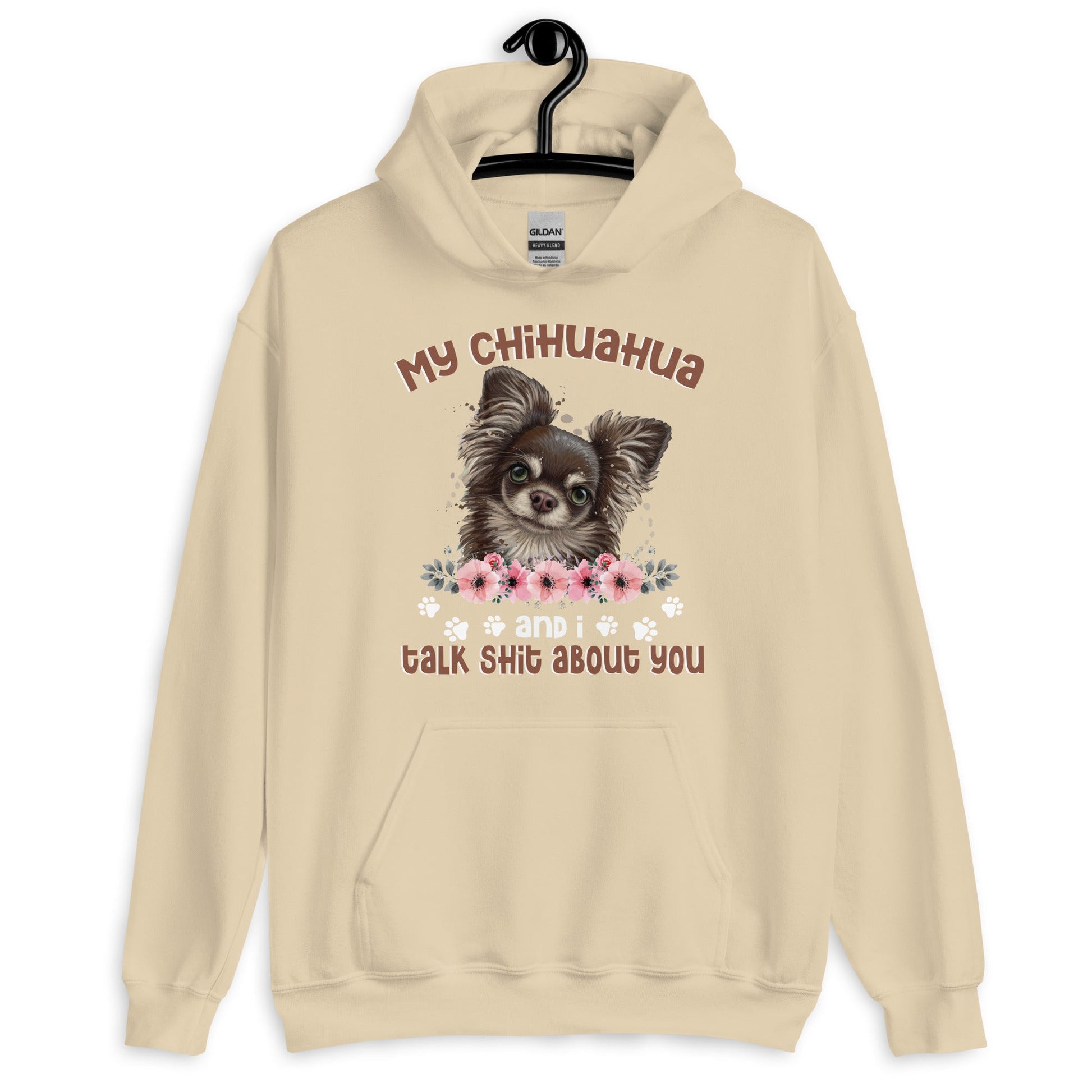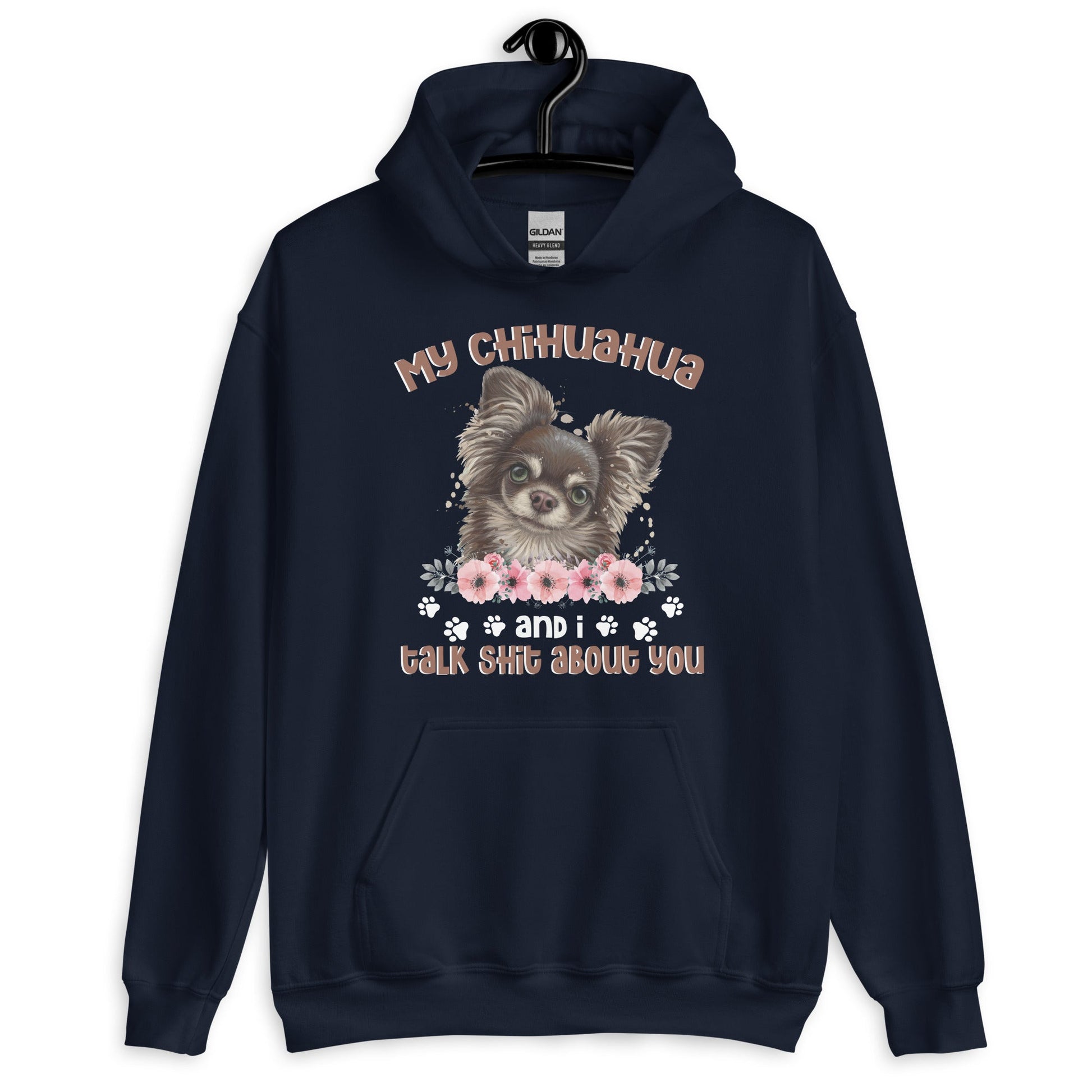 My Chihuahua And I Talk Shit About You Hoodies are printed in USA