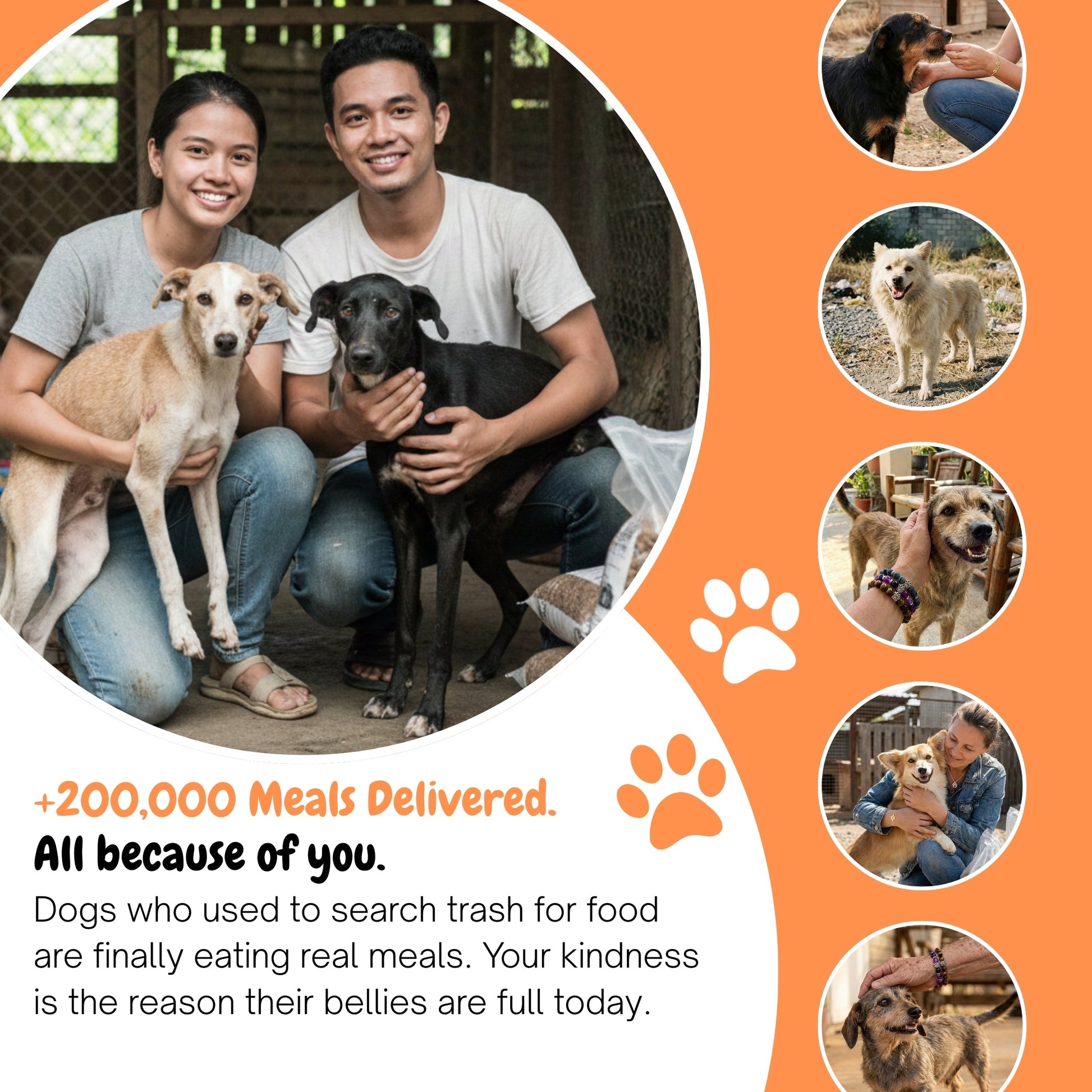 We're a small passionate team on a huge mission. Every item truly feeds 10 abandoned dogs—and you'll see the proof within 30 days.