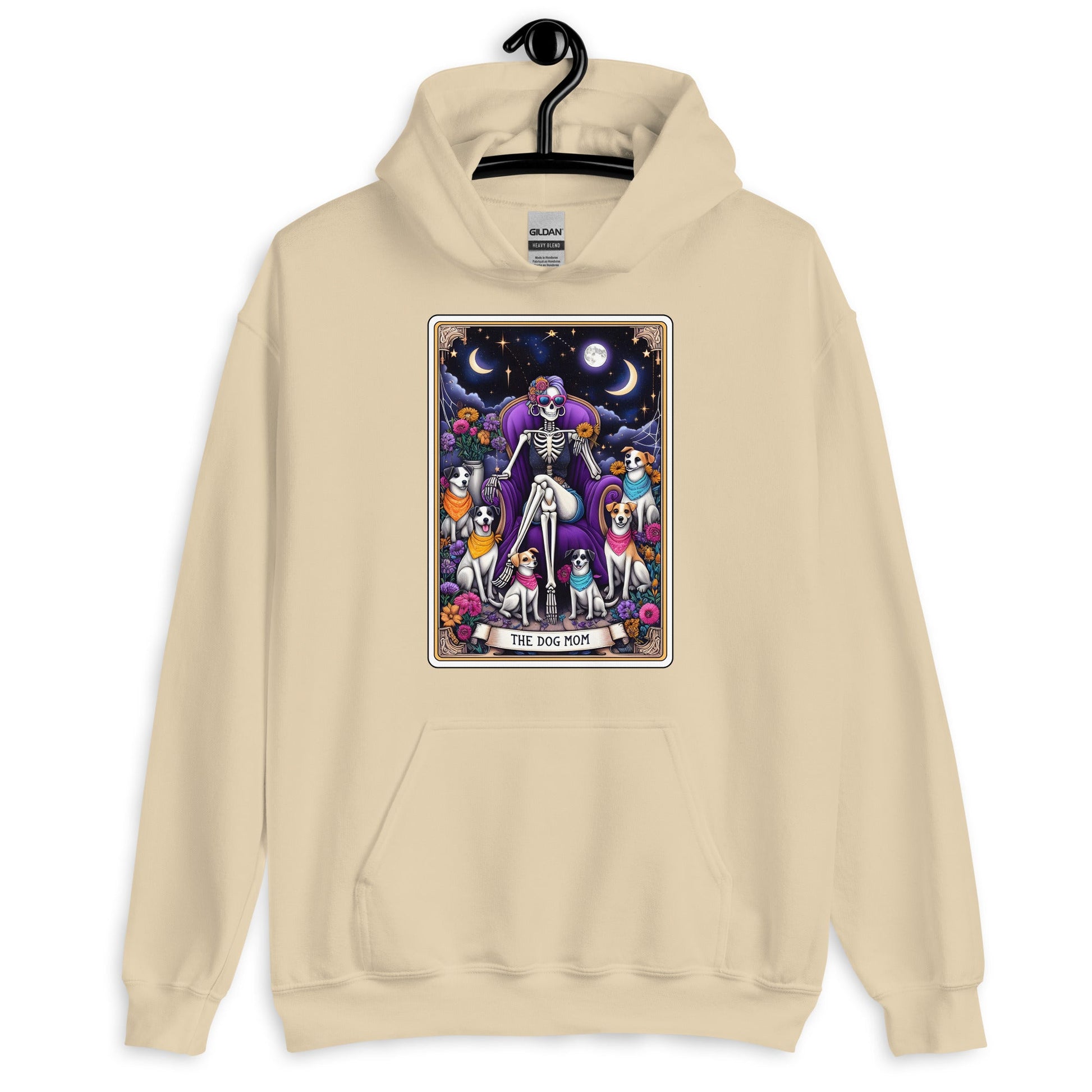 The Dog Mom Tarot Card Unisex Hoodies are printed in USA
