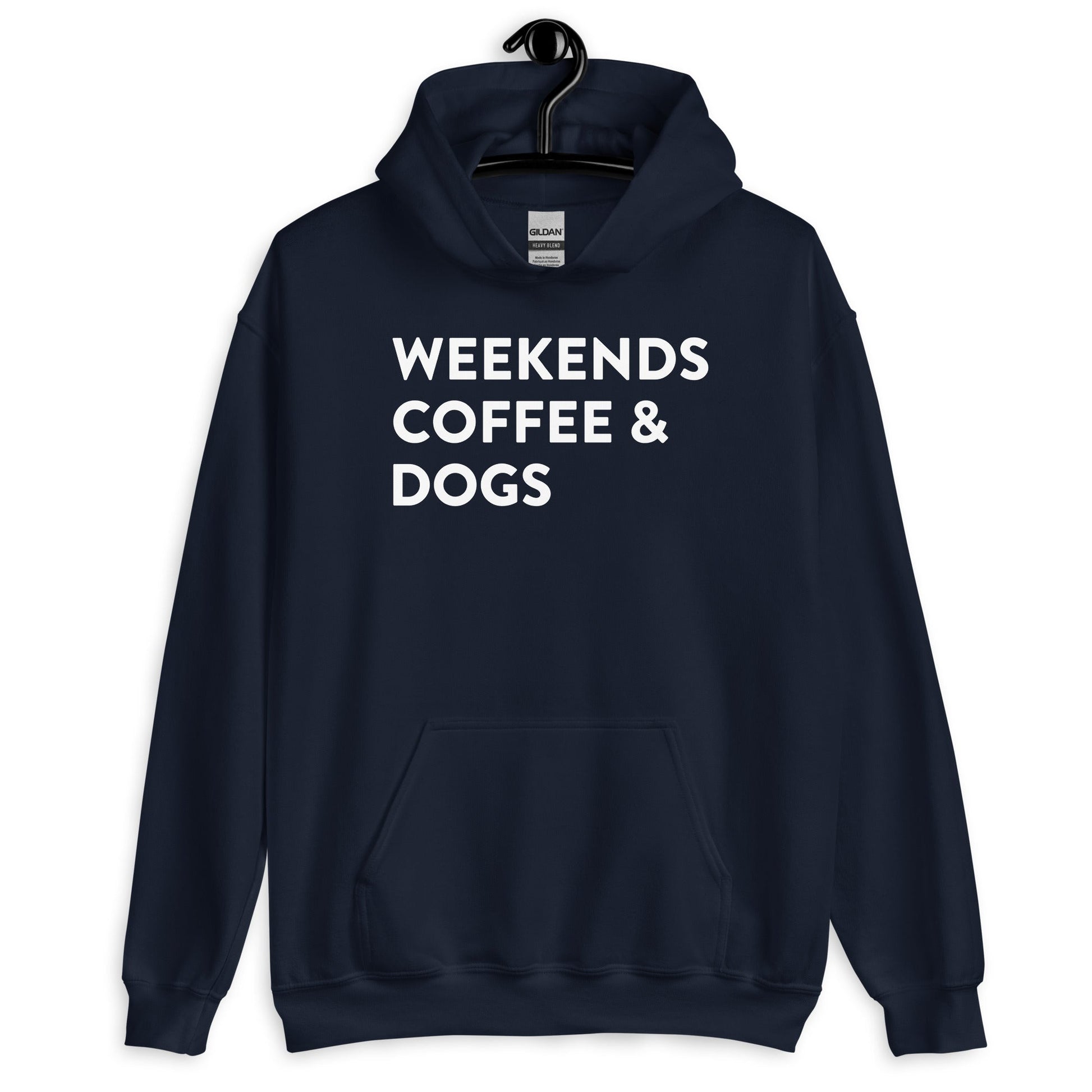 Weekends Coffee & Dogs Unisex Hoodies are printed in USA