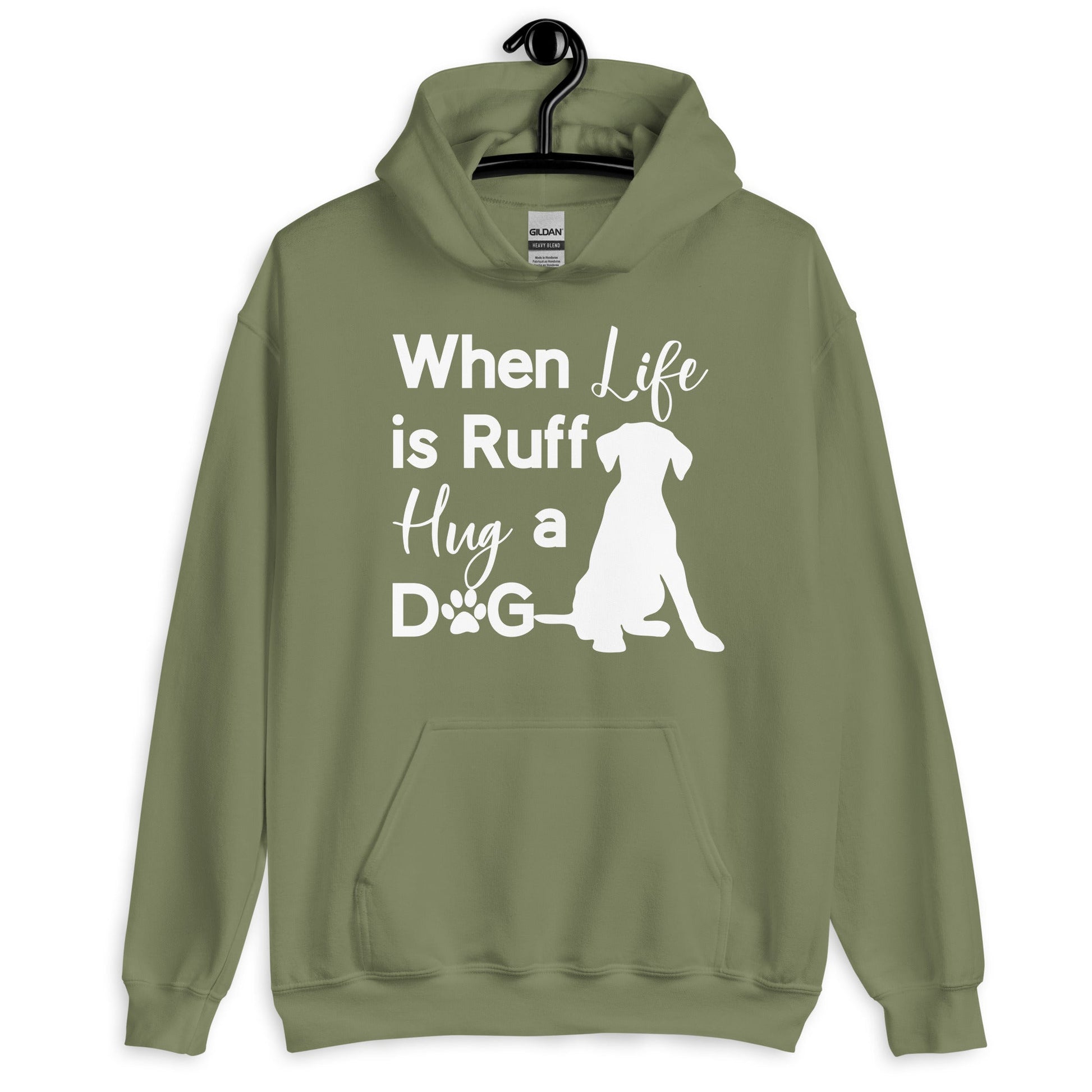 When Life is Ruff Hug a Dog Hoodies are printed in USA